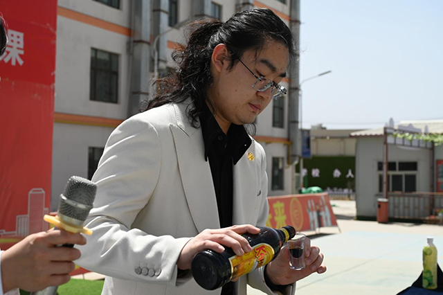 在制作过程中,王老师强调了各种调酒工具的使用方法、技巧和注意事项,并邀请同学们亲自上台体验。摇晃器的摆动声和冰块的碰撞声回荡在现场,同学们通过亲自操作,感受到了调酒的独特魅力。在现场教学环节中,王老师注重与同学互动,现场解答各类问题,并对同学们慷慨地分享了自己多年来探索调酒技艺的心得。