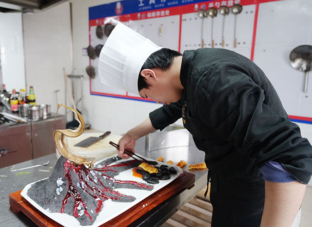 本次选拔赛分为中式烹调和中式面点两个方向,精心设置了中餐热菜、凉菜(拼盘)、中式面点、食品雕刻等项目,从多个角度、全方位地考察学生的基本功与创新能力。在规定时间内,选手们全神贯注,凭借精湛的技艺和独特的匠心,雕琢出一件件令人赞叹不已的作品。