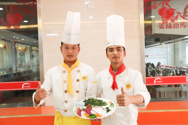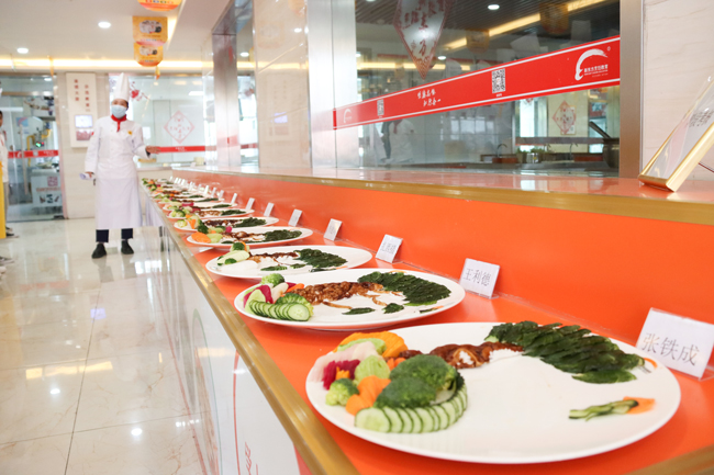 时间悄然而逝,那些普普通通的食材,如黄瓜、胡萝卜、西兰花、莴笋等在同学们的巧手之下,幻化成色彩艳丽的花样冷拼艺术盛宴。这是一场美食艺术的盛宴,一种利用食材的本色创造出的盘中艺术,可谓一盘地,让人叹为观止。