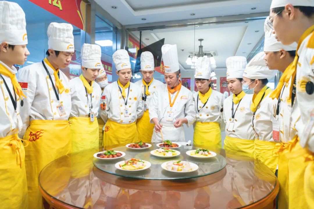 ●老师根据学生做菜手法以及菜品的色泽、味道进行讲评,指出学生们学习的优点、缺点、注意事项和努力方向。亲自示范操作步骤,手把手教学,让学生们更好的了解菜品,掌握菜品精髓。